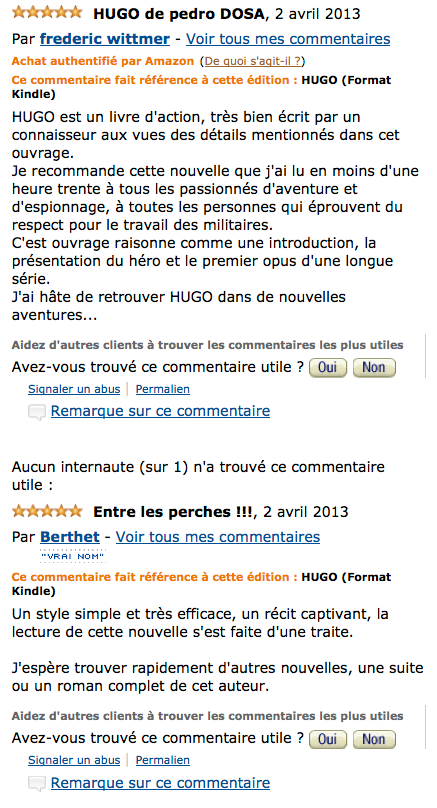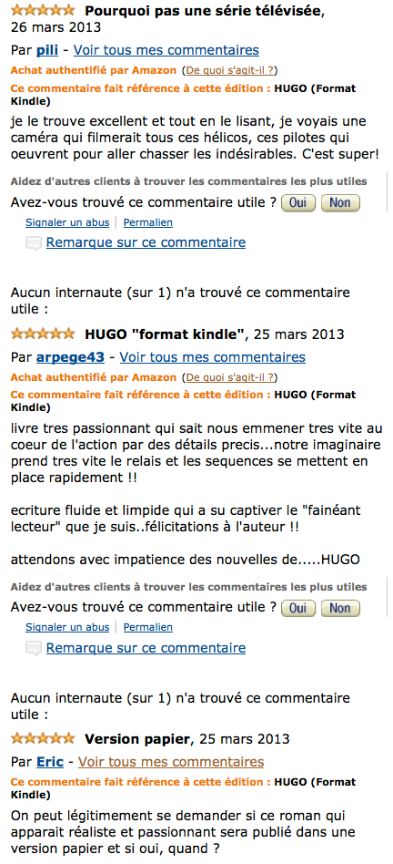 Commentaires déposés sur Amazon.fr :